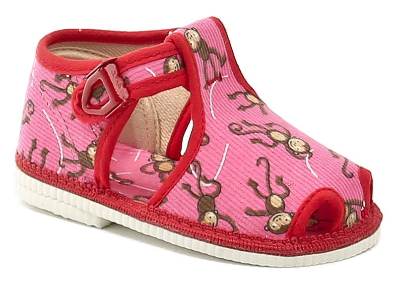 <p>Dětská celoroční domácí a přezůvková obuv na přezku.</p> <p>Obuv je celá vyrobena z textilního materiálu. Bačkůrky mají pevný opatek a kvalitní podešev.</p> <p>Papučky mají certifikát zdravotní nezávadnosti "Žirafa" vyrobeno v České Republice.</p> <p>UPOZORNĚNÍ! Obrázky jsou pouze ilustrativní, každá velikost má různé barvy a motivy.</p> <p>SPRÁVNÁ VELIKOST: Ze zkušeností doporučujeme změřit dítěti chodidlo a brát nadměrek […]