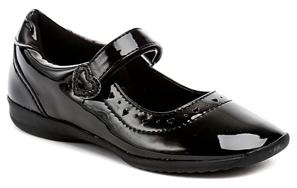 Dětská celoroční vycházková i společenská obuv se zapínáním na pásek přes nárt se suchým zipem.<br /> <br /> Obuv je vyrobena ze syntetické lakované kůže. Vnitřní část obuvi je vybavena textilní podšívkou a stélkou ze syntetické kůže.<br /> <br /> Dívčí černé balerínky.