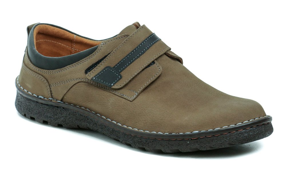 <p>Pánská celoroční vycházková obuv se zalepováním na suchý zip.</p> <p>Obuv je vyrobena z pravé přírodní kůže. Vnitřní část obuvi je vybavena rovněž pravou přírodní kůží a stélka je textilní s ortopedickou pomůckou – srdíčkem pro posílení příčné klenby</p> <p>Váha jednoho páru: 900 g</p> <p>Pánské celoroční polobotky.</p>