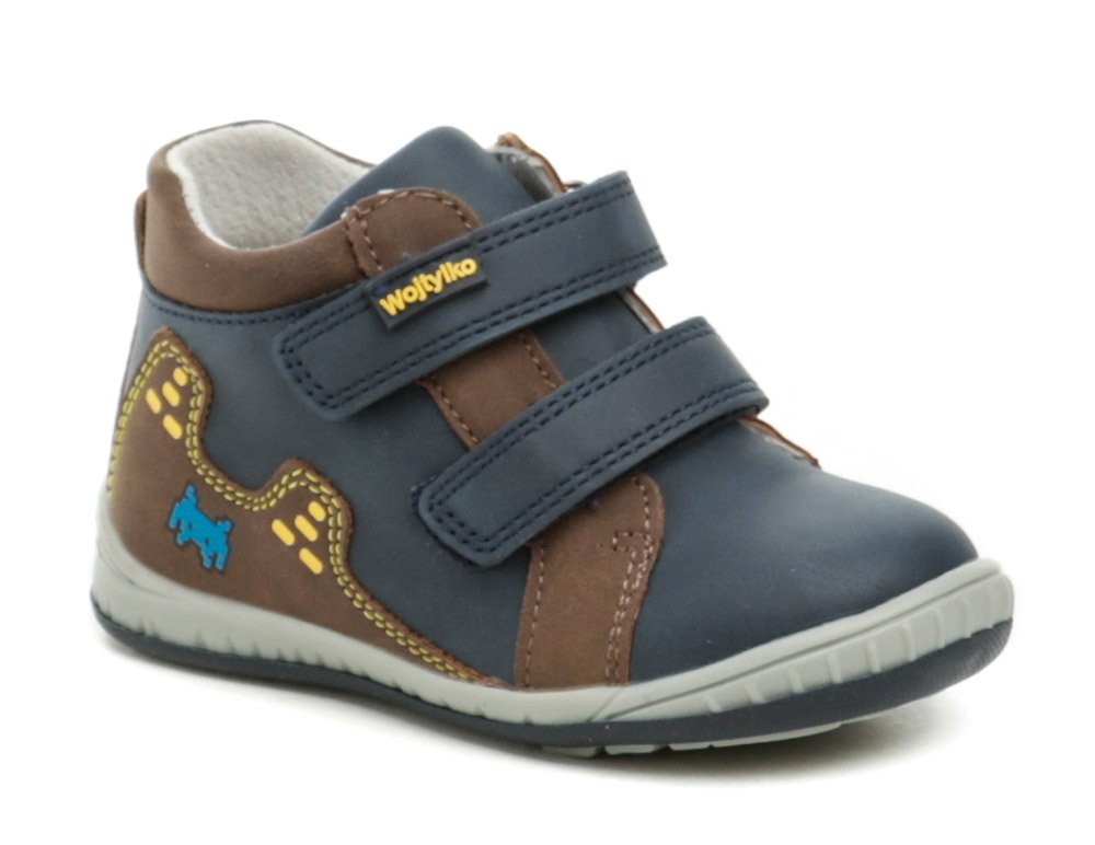 <p>Dětská celoroční vycházková obuv se zapínáním na dva pásky se suchým zipem. </p> <p>Obuv je vyrobena ze syntetické kůže. Vnitřní část obuvi je kompletně vybavena podšívkou z pravé přírodní kůže. Stélka je rovněž z přírodní kůže vybavená podporou podélné klenby.</p> <p>Váha jednoho páru: 250 g</p> <p>Vycházkové boty značky Wojtylko.</p>