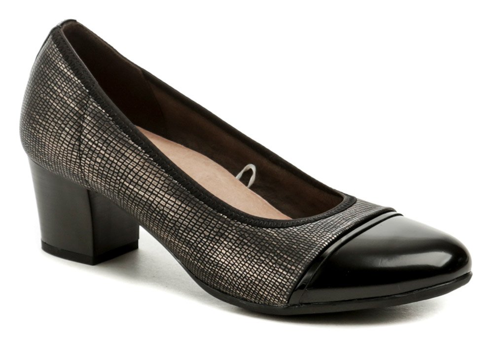 <p>Dámská celoroční vycházková obuv typu lodičky na středním podpatku.</p>